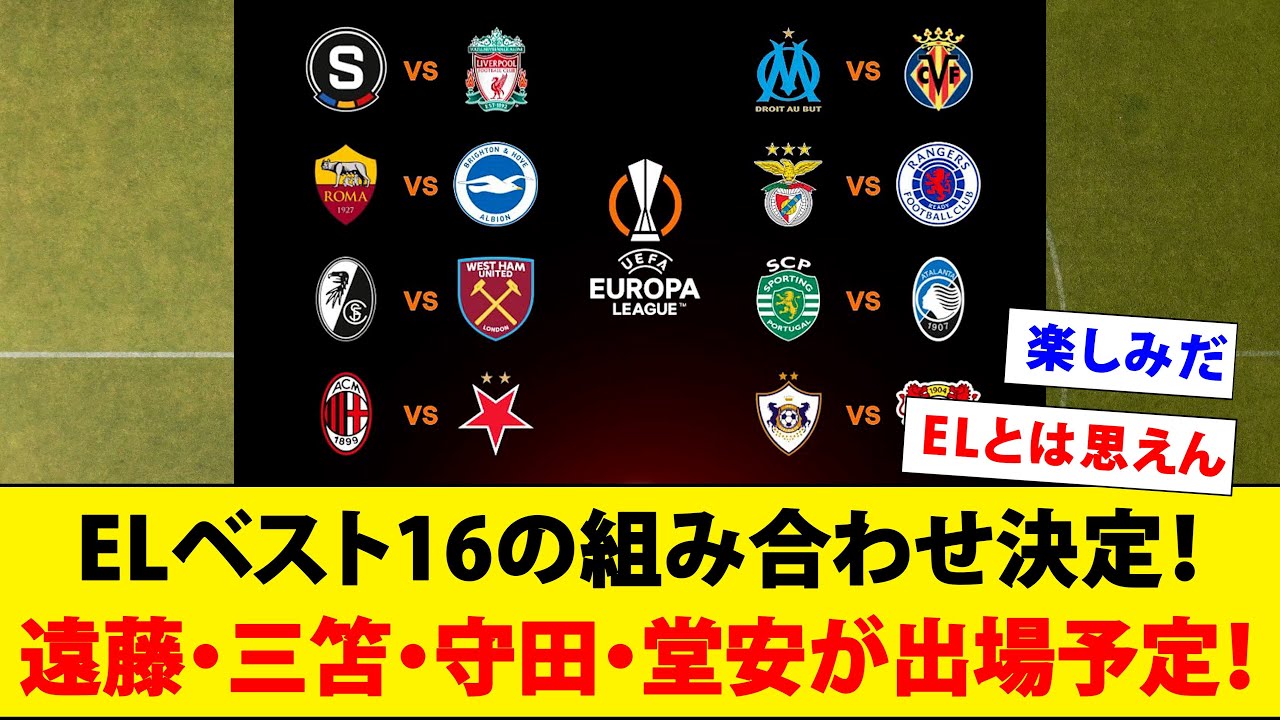 ヨーロッパリーグベスト16の組み合わせ決定!遠藤・三笘・守田・堂安が出場予定!!!【UEL】
