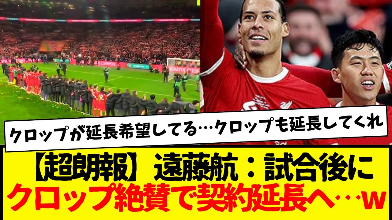 カラバ王となった遠藤航、試合後にクロップ監督が遠藤航を絶賛。