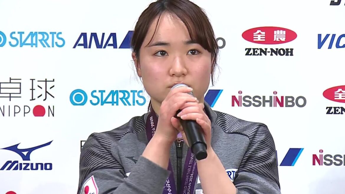 26日、卓球の男女日本代表が世界卓球2024団体戦の開催地韓国から帰国し、都内ホテルにて記者会見を行う。