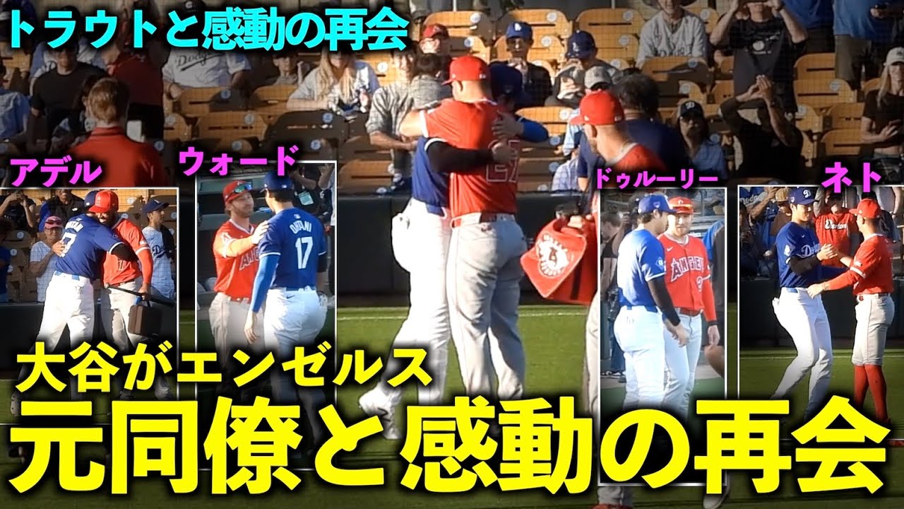 トラウトを見つけて嬉しそうな大谷翔平!エンゼルス元同僚たちとの再会が感動的すぎる!【現地映像】3月6日ドジャースOP戦
