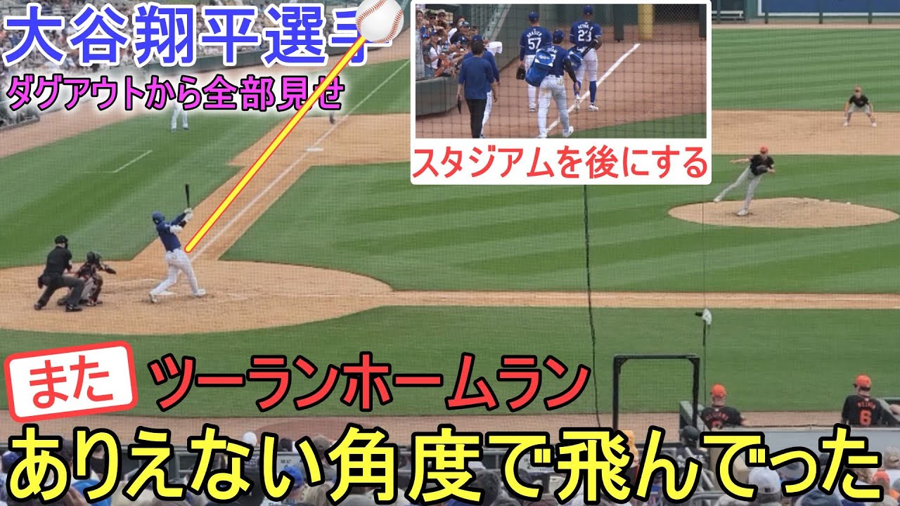 ㊗オープン戦2号ツーランホームランを打つ大谷翔平選手。ダグアウトからスタジアムを後にするまで全部見せ!