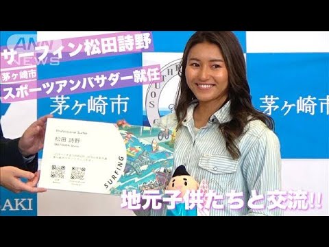 パリ五輪代表に正式決定したサーフィンの松田詩野選手が母校の市立東海岸小学校で、地元の神奈川県茅ケ崎市とスポーツ振興に関する協定(スポーツアンバサダー協定)を結ぶ式典に臨みました。