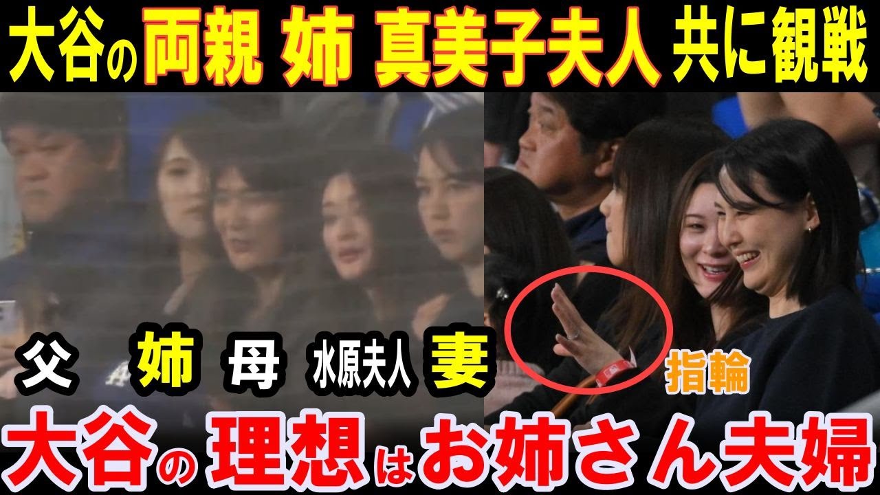 客席には、グラウンドに向かって、右から大谷翔平選手のお父さん、お姉さん、お母さん、水原通訳の奥さん、そして真美子さんが座った。