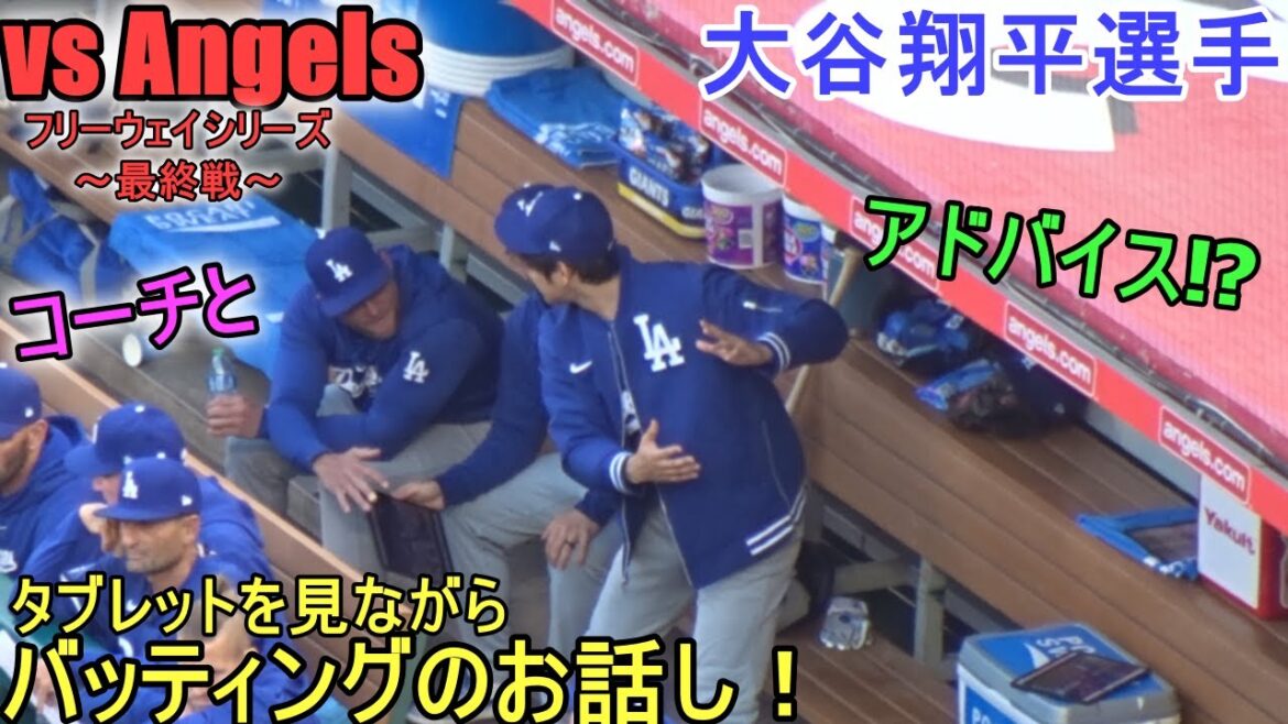 試合中にダグアウトでコーチ陣とバッティングのお話をする大谷翔平選手。タブレットを観ながら細かい部分まで、何かアドバイスをしているようにも見える⁉ 対ロサンゼルス・エンジェルス 2番DHで出場の大谷翔平選手。3.26.2024 @shinsukehandyman #大谷翔平 #shoheiohtani #ドジャース 1号angelsBaseballDodgersHomeHRJapanMajor League BaseballMLBohtaniOhtani ShoheirunshoheiShohei OHtaniエンジェルスドジャースホームラン大谷大谷翔平日本翔平速報 NIHON2020.COM