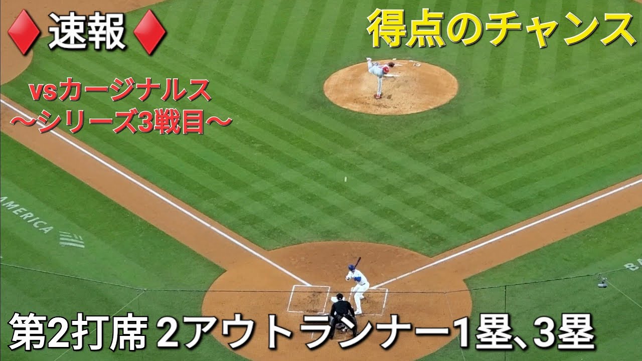 ♦️速報♦️第2打席【大谷翔平選手】2アウトランナー1塁、3塁での打席‐得点のチャンス vsカージナルス~シリーズ3戦目~