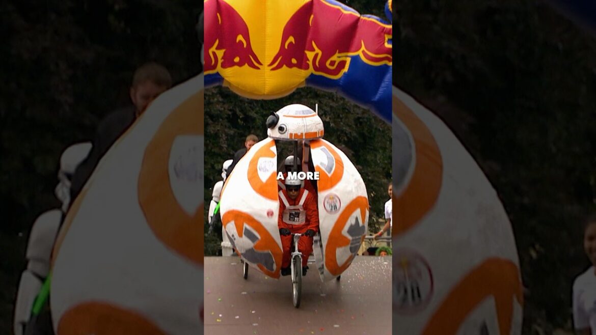 Competitors in Red Bull Soapbox try to get a homemade vehicle (designed as Star Wars’ RBB8) down the course as fast as possible