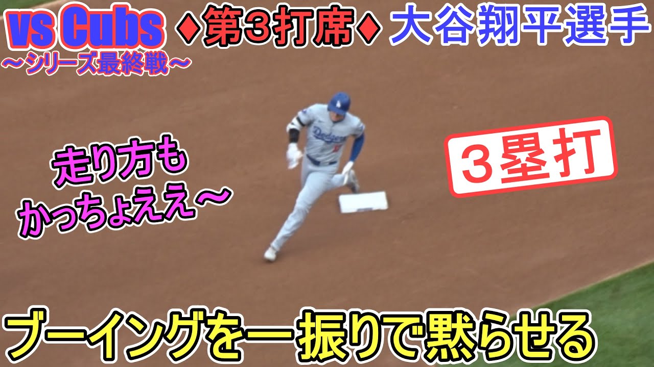 ~第3打席~右中間を真っ二つで3塁打の大谷翔平選手。塁上の様子。