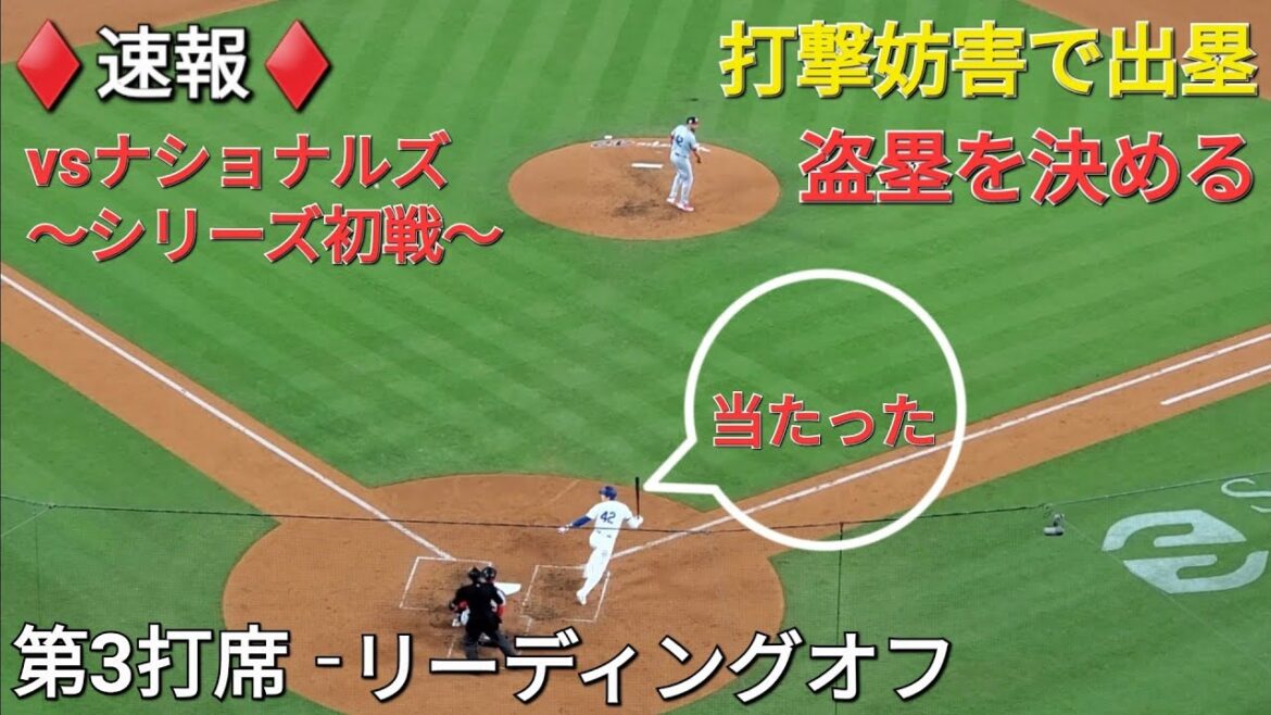 ♦️速報♦️第3打席【大谷翔平選手】リーディングオフでの打席‐打撃妨害で出塁&盗塁を決める vs ナショナルズ〜シリーズ初戦〜
