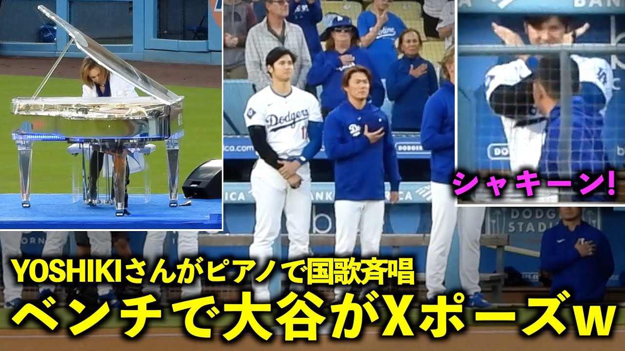 X JAPAN・YOSHIKIさんがピアノで国歌斉唱後に大谷翔平がXポーズw【現地映像】4月17日ドジャースvsナショナルズ第2戦