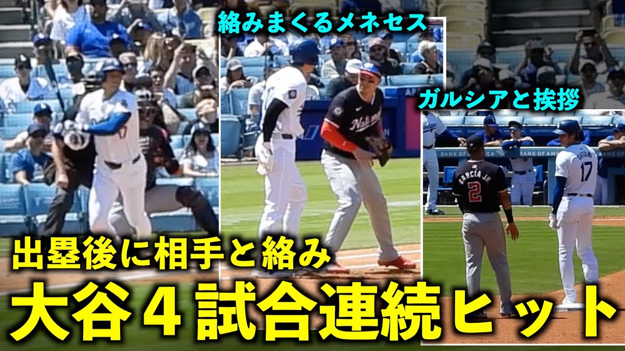 出塁後に絡み!大谷翔平 いきなり4試合連続のヒット!その後フリーマン四球でチャンスの1回裏!【現地映像】4月18日ドジャースvsナショナルズ第3戦