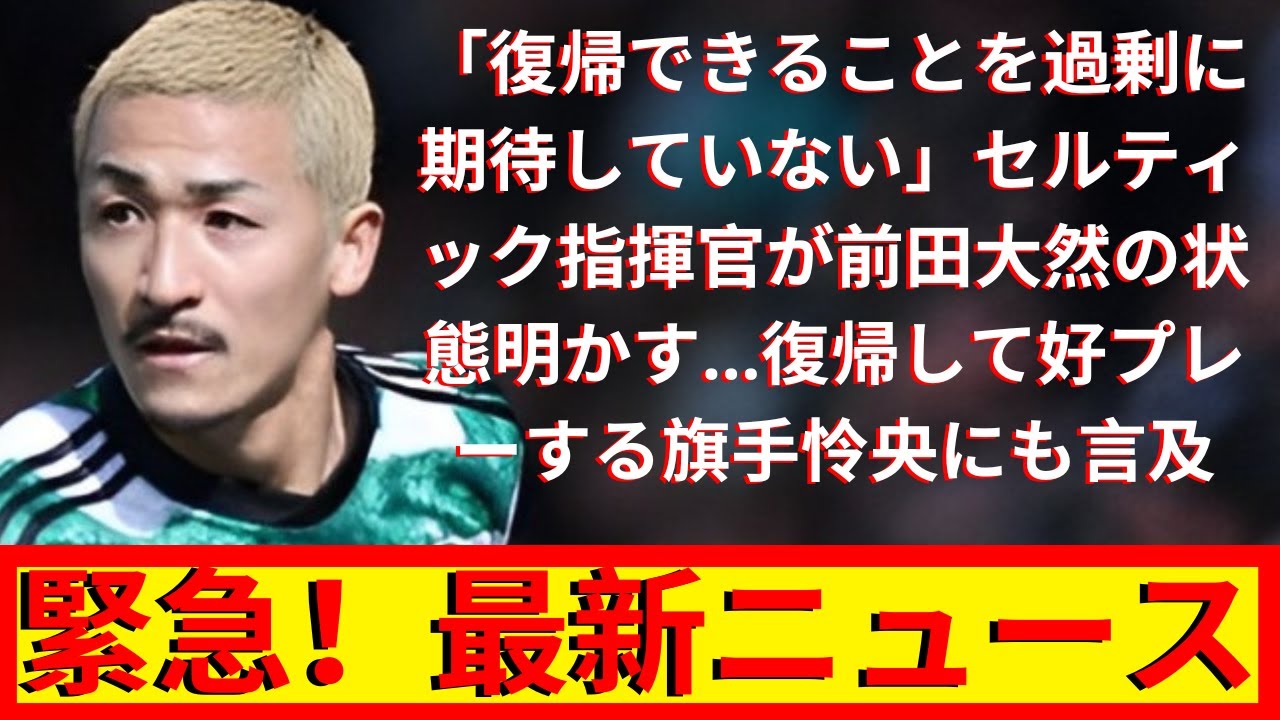 「24時間のフットボールニュース」へようこそ!セルティックのファンの皆さん、今日は監督のコメントが気になることでしょう!前田大然選手のピッチ復帰についての最新情報をお届けします。一方で、旗手怜央選手の活躍にも注目が集まっています!ニュースを見逃さず、チャンネル登録をお願いします!