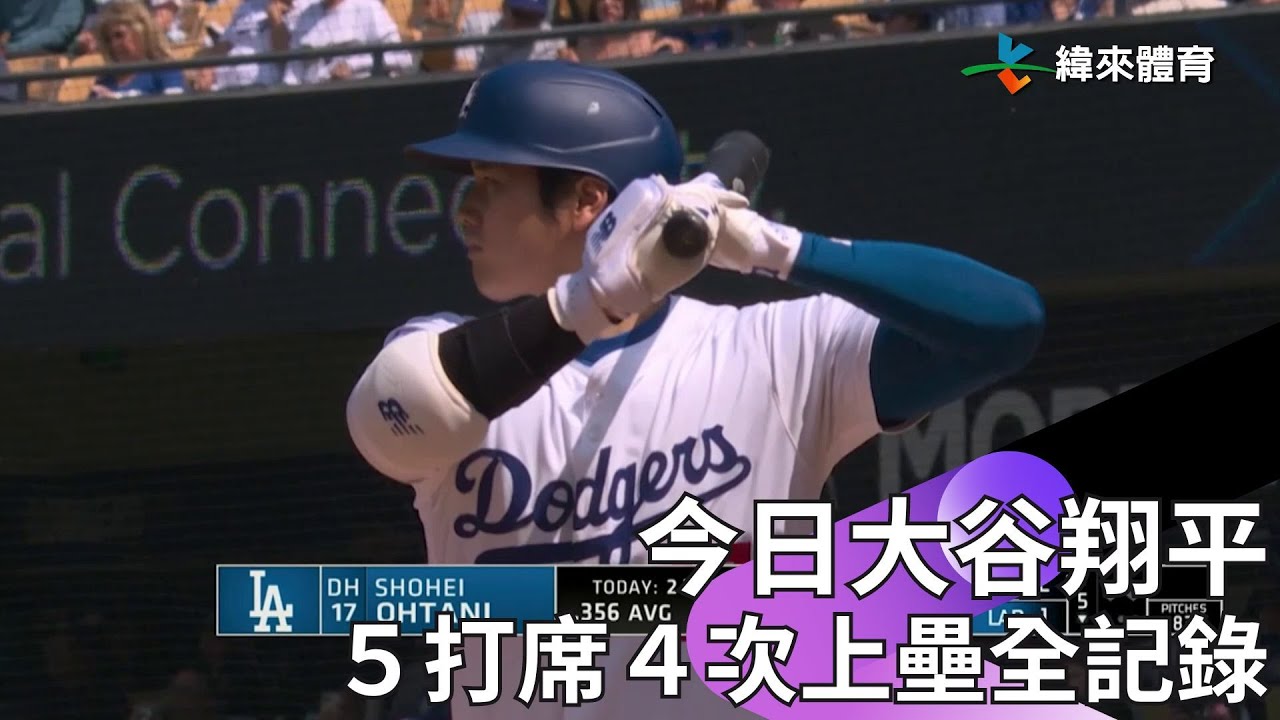 大谷翔平今天5個打席獲得3次保送,有一支二壘安打、吞下1次三振