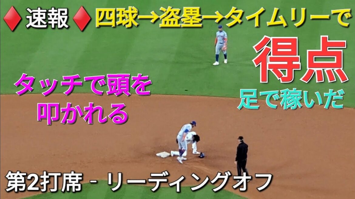 ♦️速報♦️第2打席【大谷翔平選手】リーディングオフでの打席‐四球を選ぶ→盗塁(5個目)→タイムリーで得点 vs メッツ〜シリーズ初戦〜