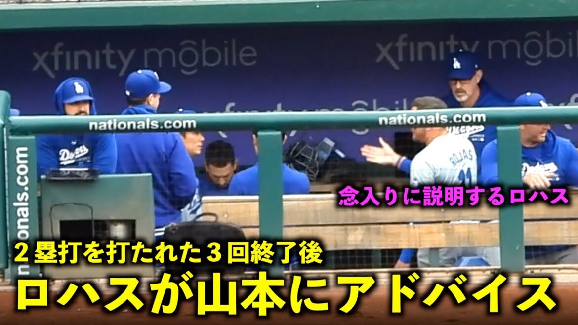 2塁打を許した3回裏終了後、ショートのロハスが山本由伸にアドバイス!【現地映像】4月26日ドジャースvsナショナルズ第3戦