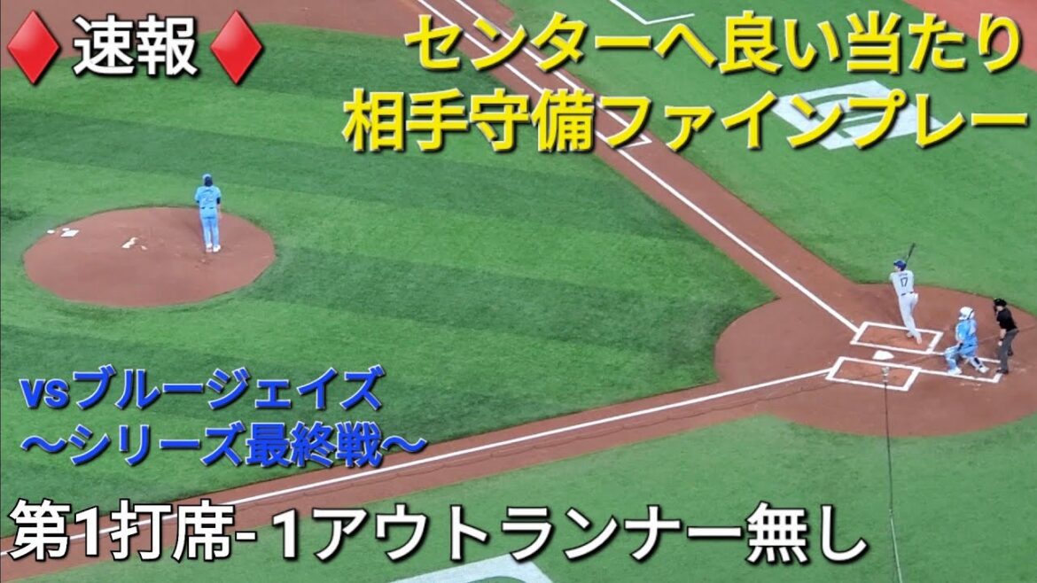 ♦️速報♦️第1打席【大谷翔平選手】1アウトランナー無しでの打席-センターへ良い当たり、相手のファインプレーに阻まれる vsブルージェイズ〜シリーズ最終戦〜