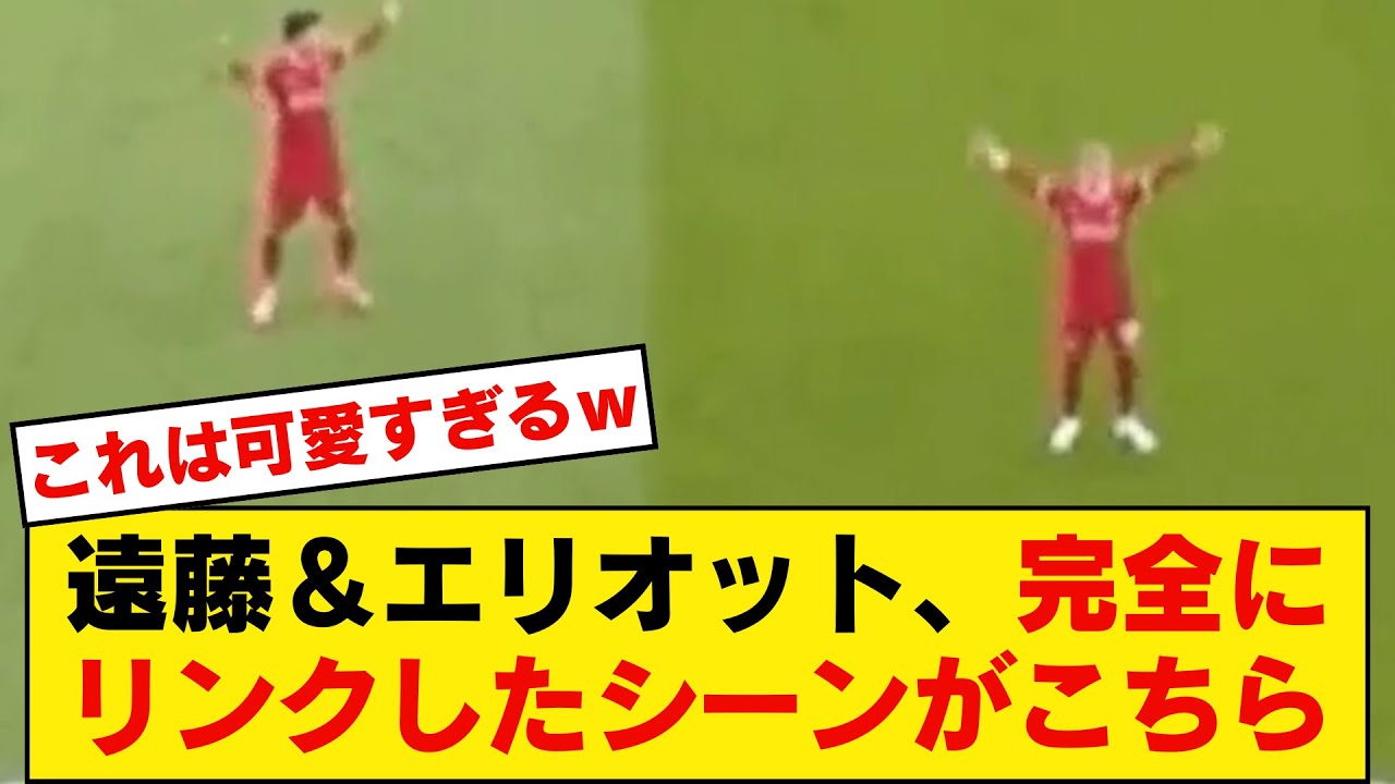 4月22日に行われたプレミアリーグ第33節リバプール対フラム戦のアーノルドのゴール直後の遠藤とエリオットの動作に関する動画です