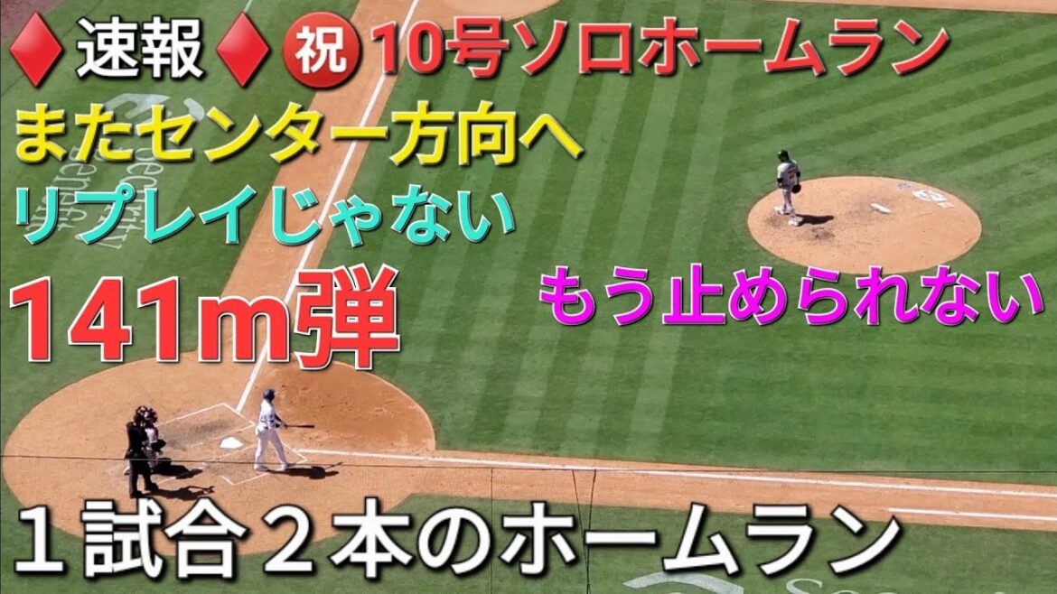 ♦️速報♦️㊗️10号ソロホームラン【大谷翔平選手】リプレイじゃない‼️また打ったセンターへ141m弾 vsブレーブス〜シリーズ最終戦〜