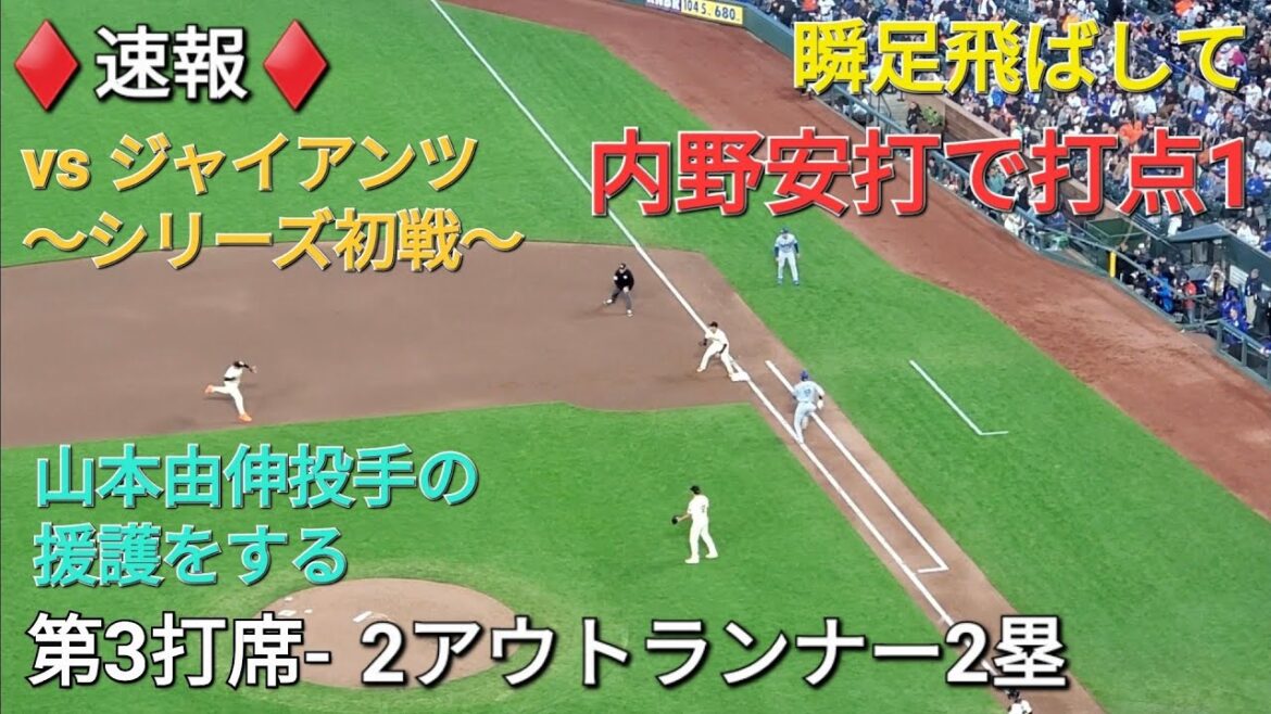 ♦️速報♦️第3打席【大谷翔平選手】2アウトランナー2塁での打席-内野安打で打点をあげる vsジャイアンツ〜シリーズ初戦〜