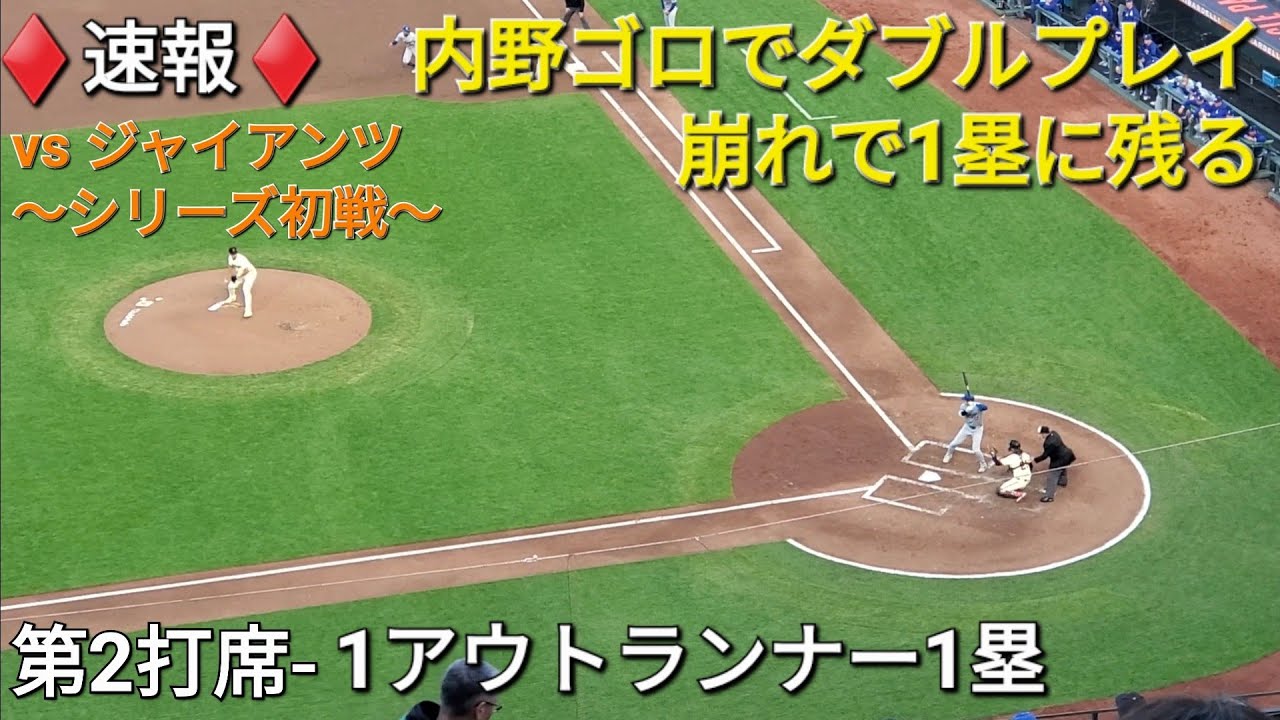 ♦️速報♦️第2打席【大谷翔平選手】1アウトランナー1塁での打席-ダブルプレイ崩れで1塁に残る vsジャイアンツ〜シリーズ初戦〜