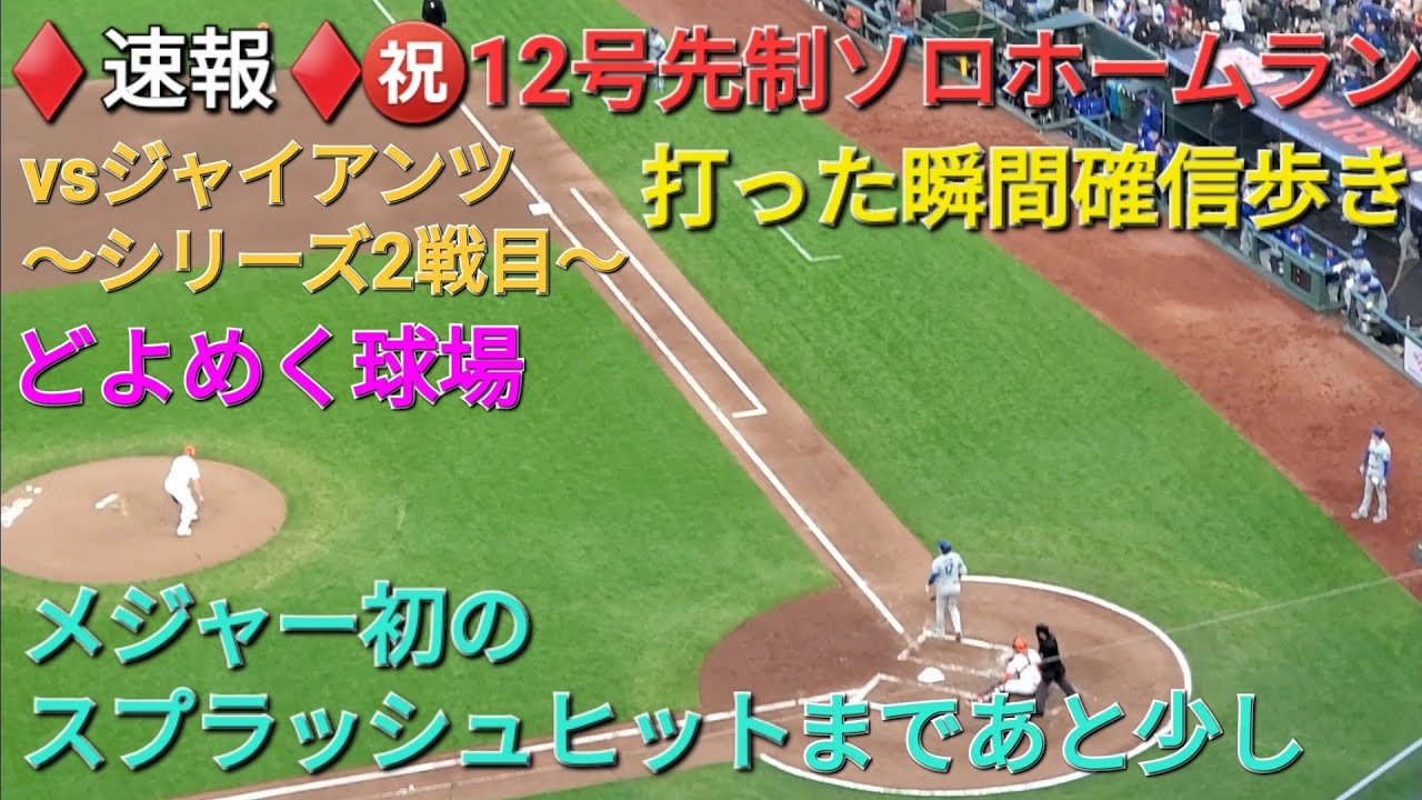 ♦️速報♦️㊗️12号ソロホームラン【大谷翔平選手】メジャー初のスプラッシュヒットまであと少し✨打った瞬間確信歩き vsジャイアンツ〜シリーズ2戦目〜