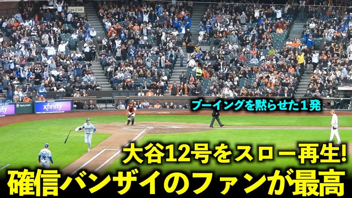 敵地を黙らせる!大谷12号ホームランをスロー再生したら確信バンザイするファンが最高すぎた!【現地映像】5月14日ドジャースvsジャイアンツ第2戦