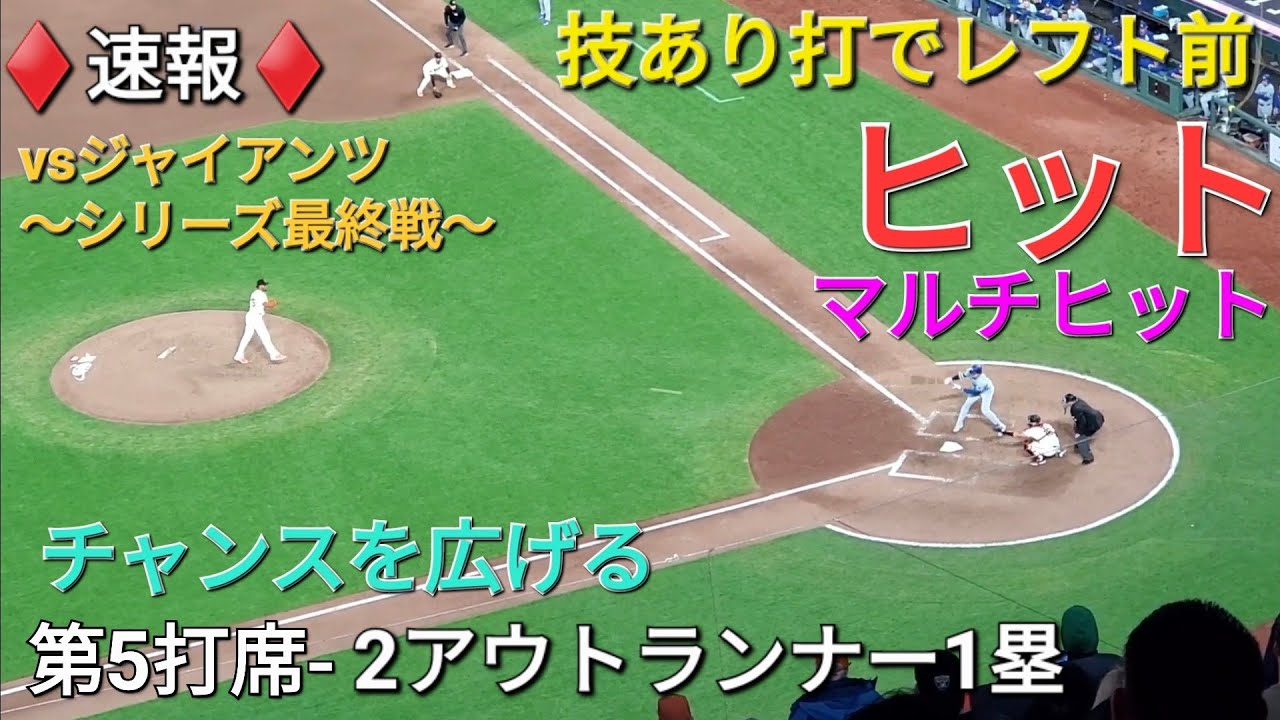 ♦️速報♦️第5打席【大谷翔平選手】2アウトランナー1塁での打席-レフト前ヒットでチャンスを広げる vsジャイアンツ〜シリーズ最終戦〜