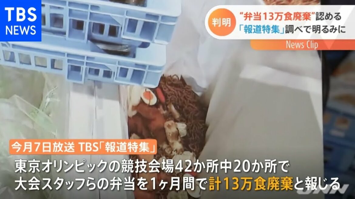 今月7日放送の「報道特集」は、東京オリンピックの競技会場42か所のうち20か所について、先月3日からの1か月間で大会スタッフらの弁当あわせて13万食が廃棄されていたと報じました。