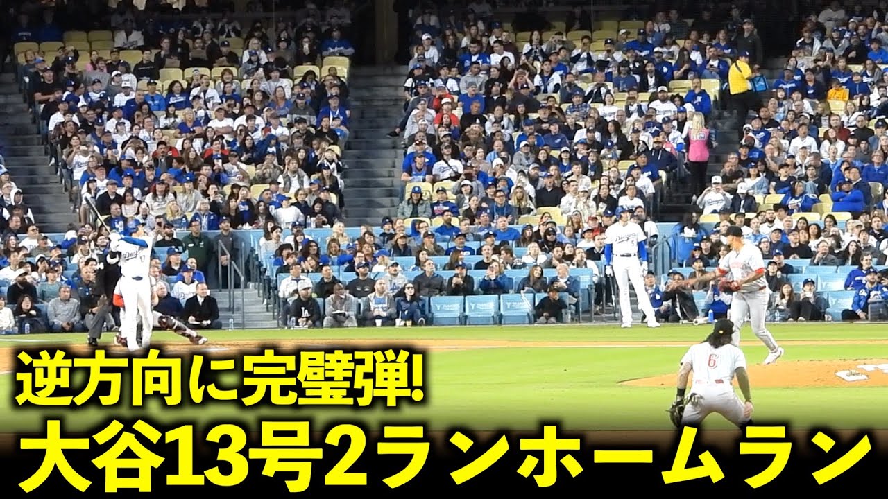 逆方向への完璧弾に総立ち!大谷翔平 衝撃の13号2ランホームランがヤバすぎる!【現地映像】5月18日ドジャースvsレッズ第2戦