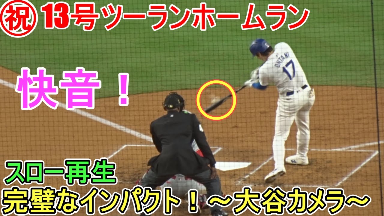 ㊗13号ツーランホームランを打つ大谷翔平選手(打者のみの映像)。初球を狙い撃ち!球場に快音を響き渡す!