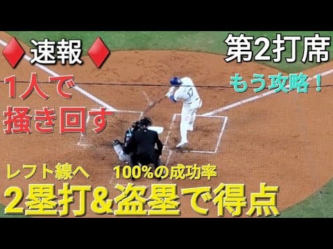 ♦️速報♦️第2打席【大谷翔平選手】リーディングオフでの打席‐レフト線へ2塁打&盗塁でミスを誘いホームイン vs ダイアモンドバックス〜シリーズ2戦目〜