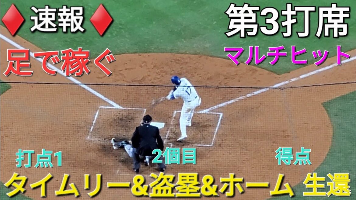 ♦️速報♦️第3打席【大谷翔平選手】1アウトランナー2塁での打席‐ライト前へタイムリーで打点&2個目盗塁&スミス選手のタイムリーでホームイン vsダイアモンドバックス〜シリーズ2戦目〜