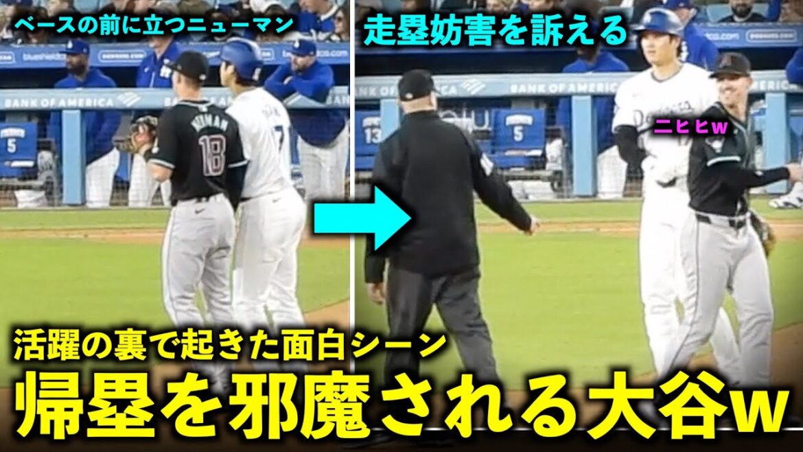 押し合うw イタズラで帰塁を邪魔され走塁妨害を訴える大谷翔平w【現地映像】5月22日ドジャースvsダイアモンドバックス第2戦