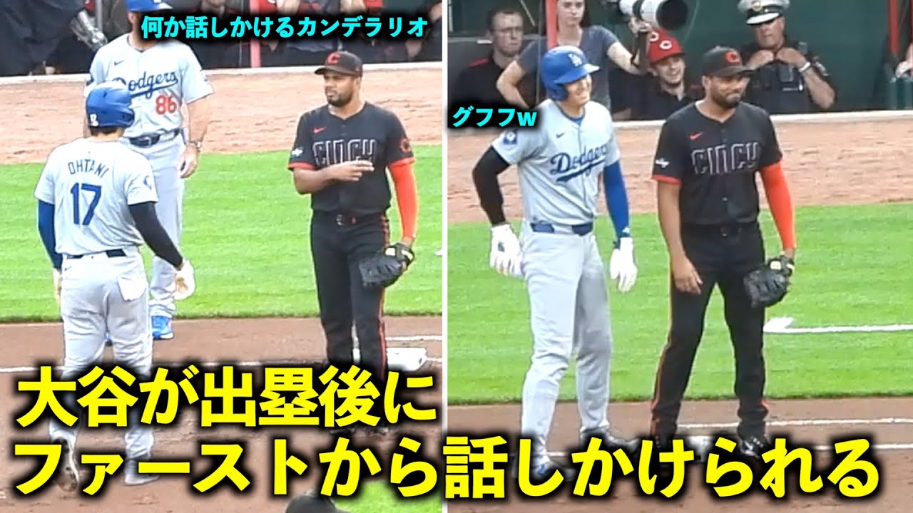 気になる会話!出塁後にファーストのカンデラリオに話しかけられる大谷翔平【現地映像】5月25日ドジャースvsレッズ第1戦