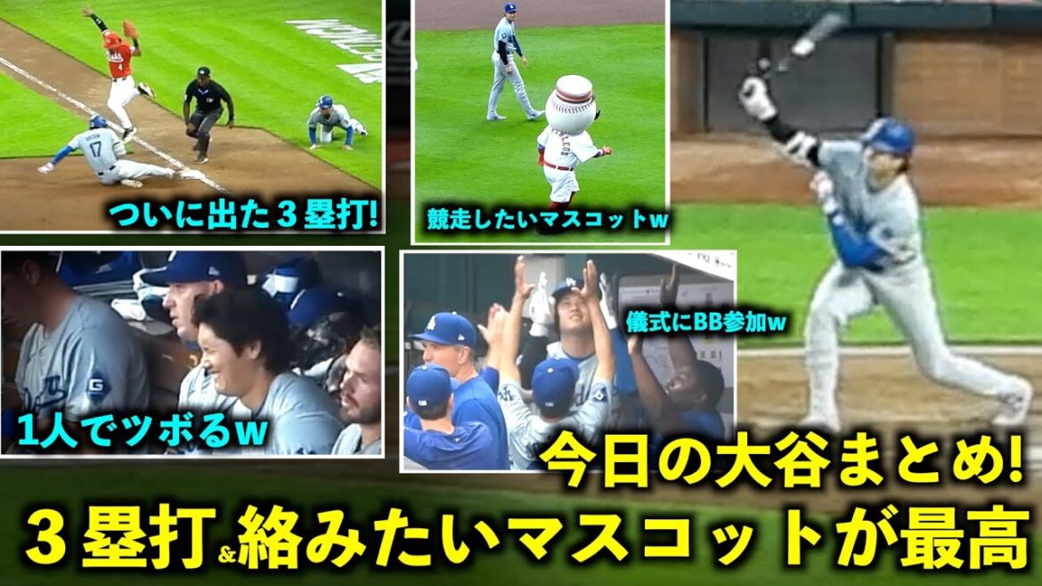 今日の大谷まとめ!ついに出た三塁打&絡みたい敵地マスコット、そして1人でツボる姿に注目!【現地映像】5月26日ドジャースvsレッズ第2戦