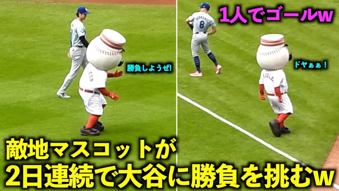 これぞ不戦勝w 2日連続で大谷翔平に勝負を挑む敵地マスコット!【現地映像】5月27日ドジャースvsレッズ第3戦