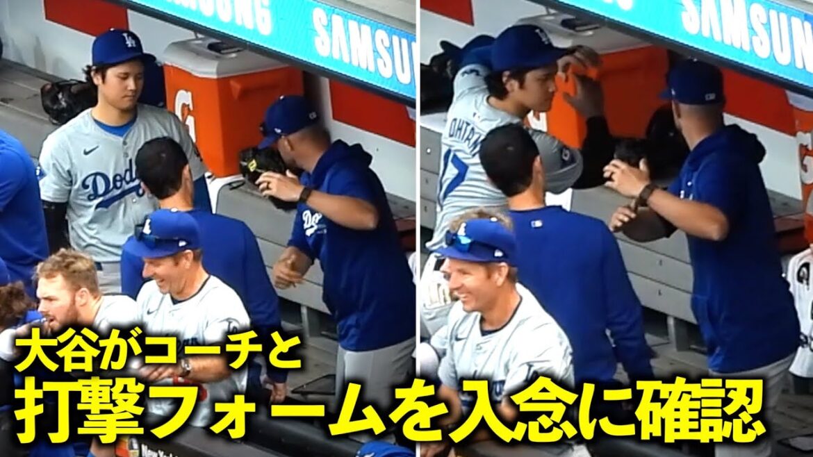 修正点を見つけて室内へ!コーチと打撃フォームを入念に確認する大谷翔平!【現地映像】5月30日ドジャースvsメッツ第3戦