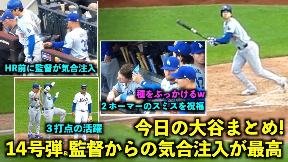 今日の大谷まとめ!14号2ラン&適時打で3打点の活躍、そして監督からの気合注入が最高すぎた!【現地映像】5月30日ドジャースvsメッツ第3戦