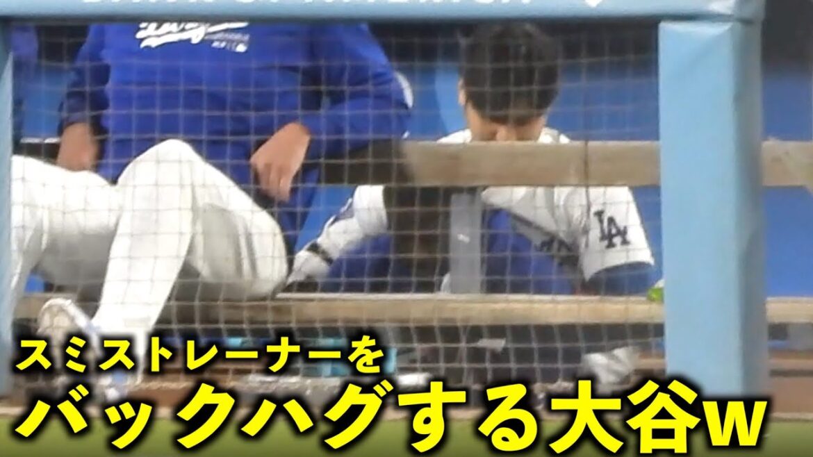 後ろからガッチリとw スミストレーナーにバックハグする大谷翔平【現地映像】6月1日ドジャースvsロッキーズ第1戦