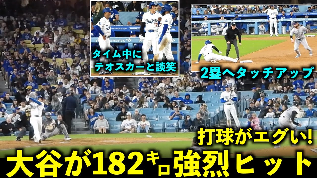 タイム中にテオと談笑!大谷翔平 182㌔強烈センター前ヒット後に2塁へタッチアップ!【現地映像】6月2日ドジャースvsロッキーズ第2戦