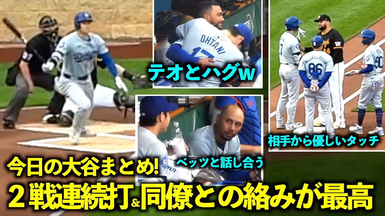 今日の大谷まとめ!2戦連続打&テオスカーにハグ、そしてテレスからの優しいタッチが面白すぎたw【現地映像】6月7日ドジャースvsパイレーツ第3戦