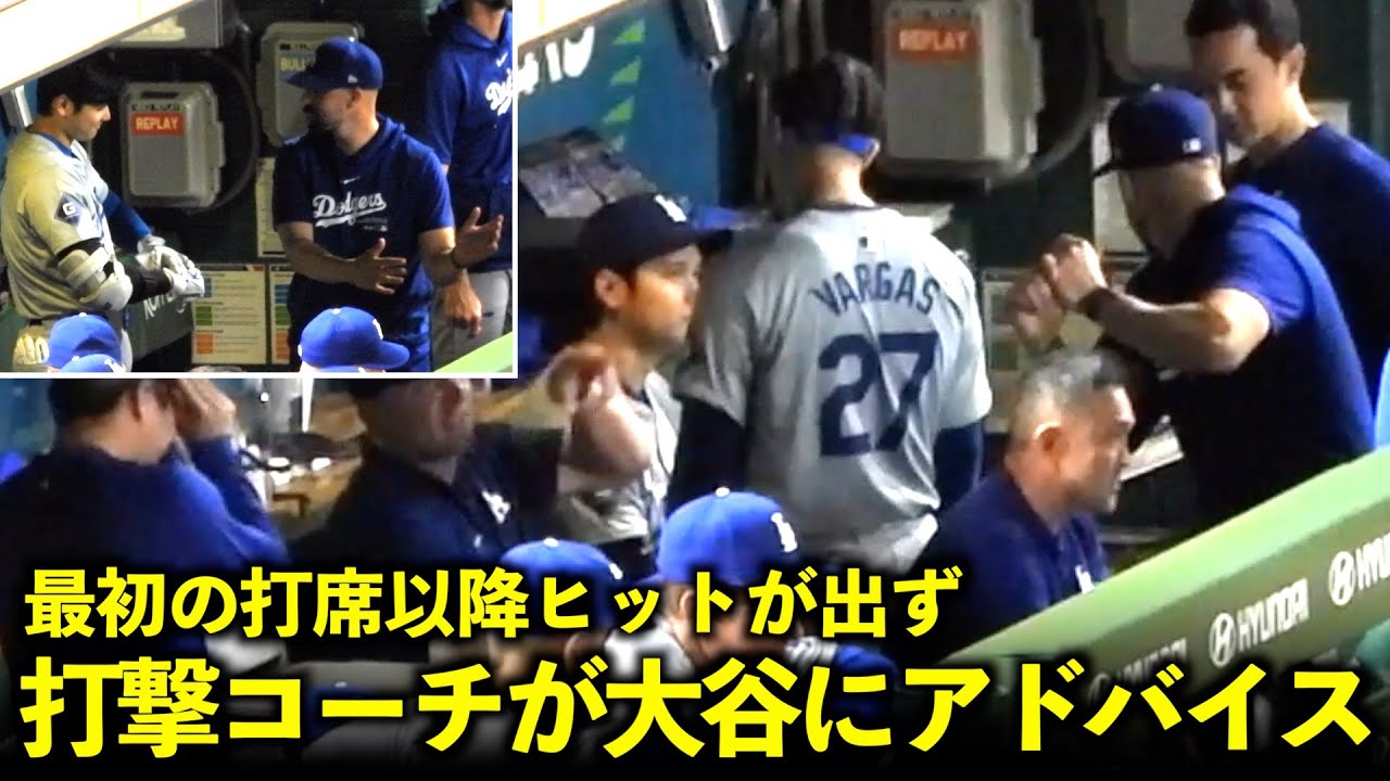 打撃コーチからアドバイスを受ける大谷翔平!その横でトレーナーにイタズラする山本w【現地映像】6月7日ドジャースvsパイレーツ第3戦