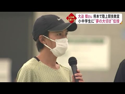 男子マラソンの東京オリンピック代表、大迫傑さんが20日、熊本の小中学生に走り方のコツや夢をかなえるための考え方などを伝授しました。