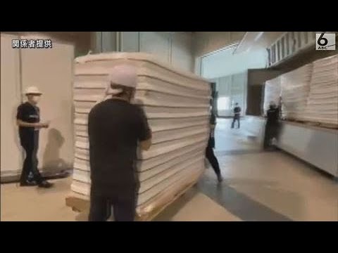 (辻村周次郎記者リポート)「こちらが選手村で使われていた段ボールベッド。これから、段ボールベッドの組み立てが始まります」。