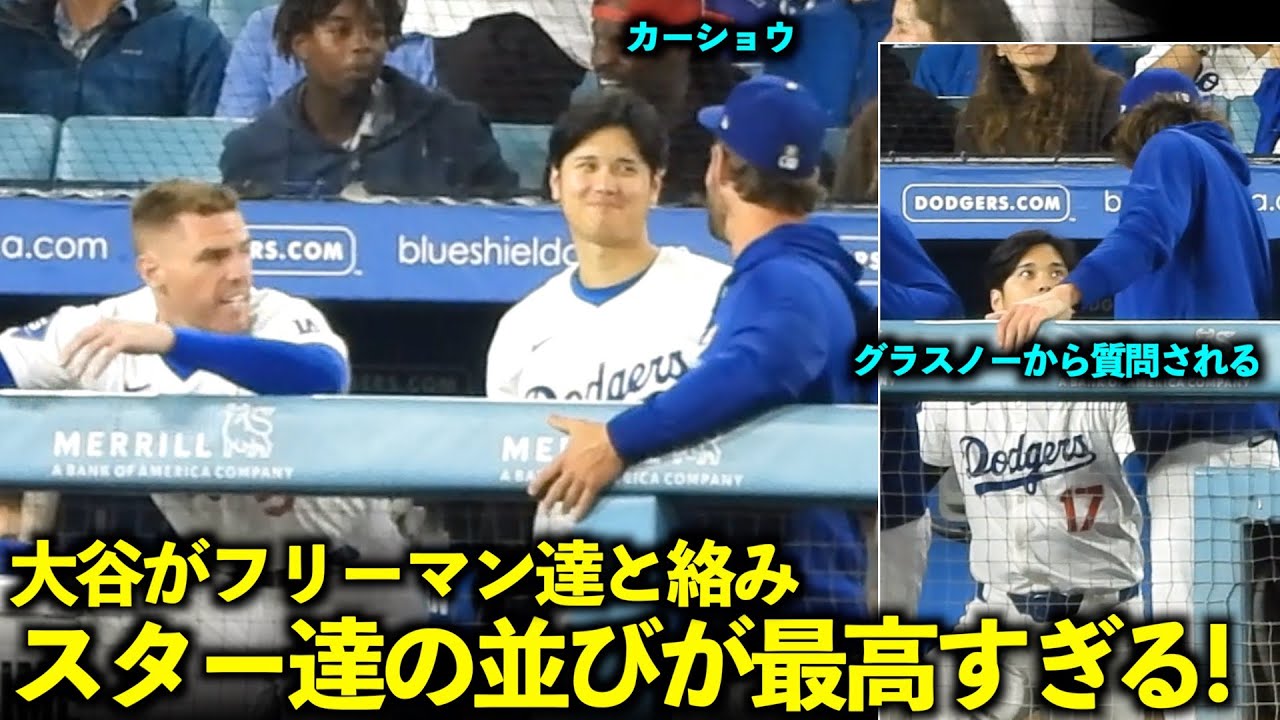 グラスノーから何か質問される大谷翔平!フリーマンと笑顔で絡みも!【現地映像】6月13日ドジャースvsレンジャーズ第2戦