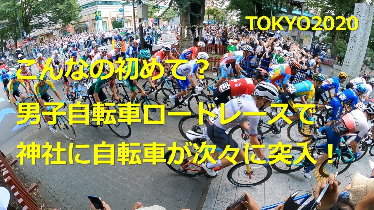 東京オリンピック 男子 自転車ロードレース パレード走行で神社に突入! Tokyo 2020 Olympics : Men's Road Race Final : Rush into a Shrine