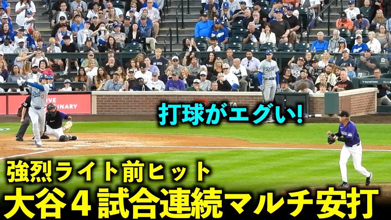 エグい打球!大谷翔平が強烈ライト前ヒットで4試合連続マルチ!【現地映像】6月20日ドジャースvsロッキーズ第3戦