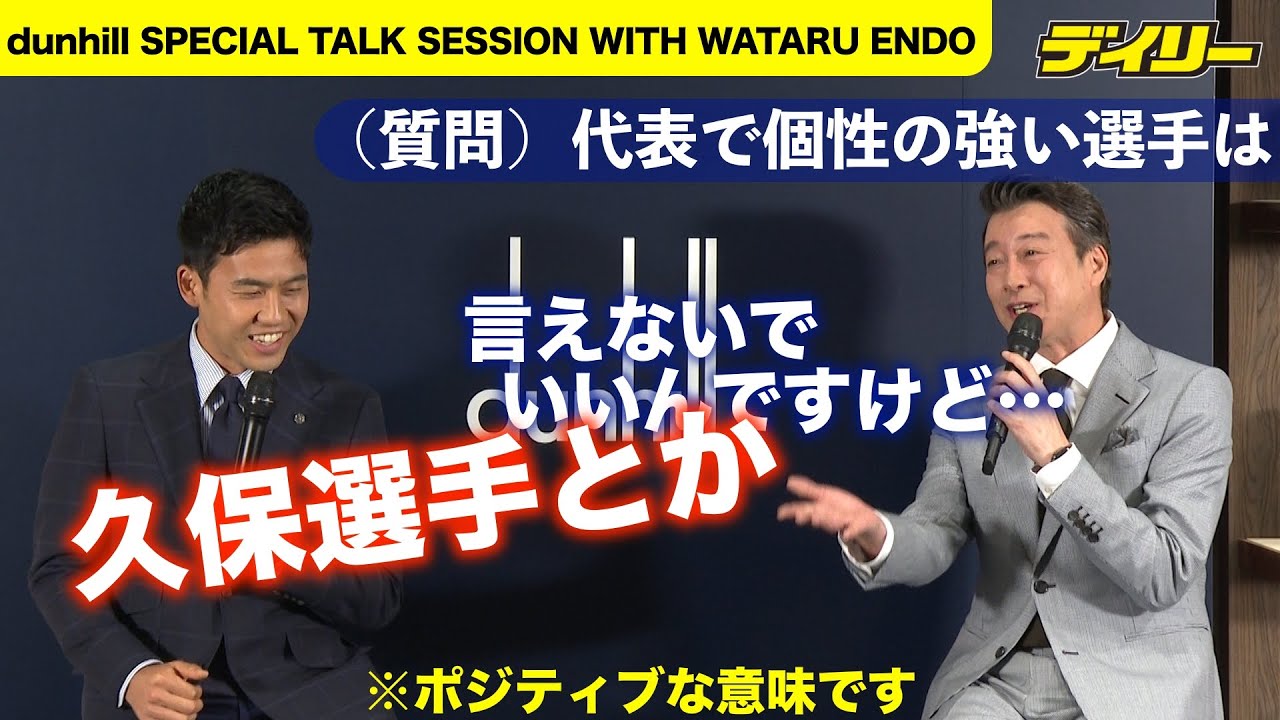 サッカー日本代表の主将・遠藤航が20日、日本代表のオフィシャルスーツを提供しているダンヒルの催し「dunhill SPECIAL TALK SESSION WITH WATARU ENDO」に出席し、加藤浩次とのトークイベントに臨んだ。