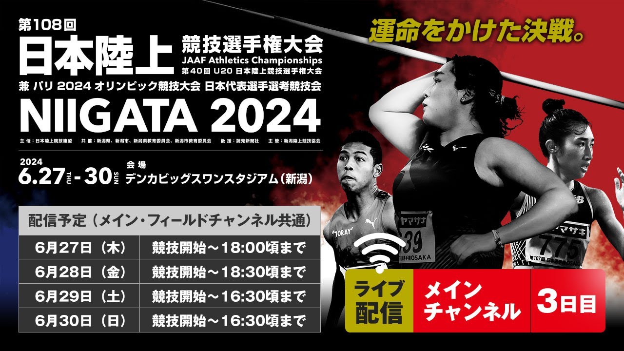 2024年6月27日(木)~30日(日)の4日間、第108回 #日本選手権 をライブ配信!