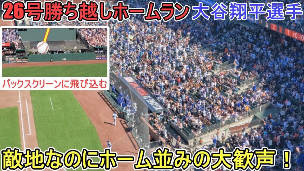 ㊗26号バックスクリーンへ勝ち越しソロホームランの大谷翔平選手。敵地でも大歓声で大盛り上がり!ダグアウトからダグアウトまで全部見せ。