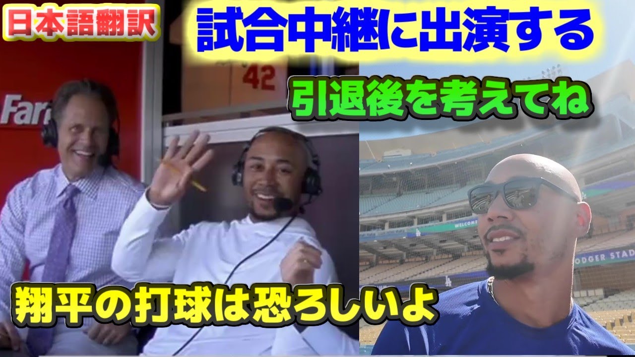 何とSportsNetLAの試合中継にゲスト出演し試合解説していました。